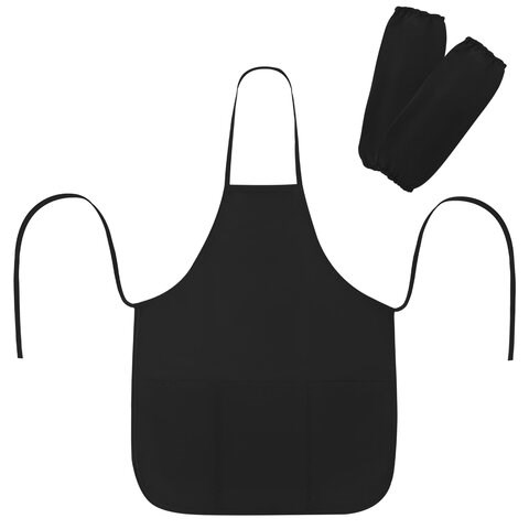 Фартук с нарукавниками для уроков труда ПИФАГОР, 3 кармана, уменьшенный размер, 39х49 см, черный, 273751