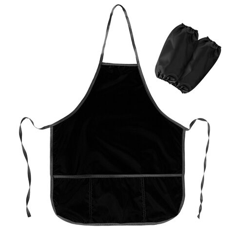 Фартук с нарукавниками для уроков труда ПИФАГОР, 3 кармана, увеличенный размер, 45x60 см, черный, 273747