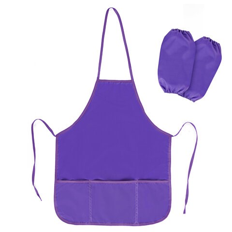 Фартук с нарукавниками для уроков труда ПИФАГОР, 3 кармана, увеличенный размер, 45x60 см, фиолетовый, 273748