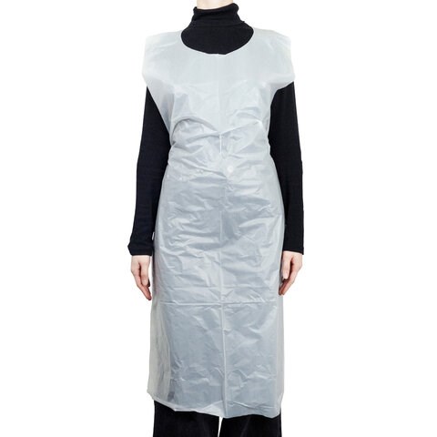 Фартук полиэтиленовый отлично защищает от загрязнений, не пропускает влагу. Одноразовый фартук легко раскрывается и надевается, при этом не ощущается при ношении.