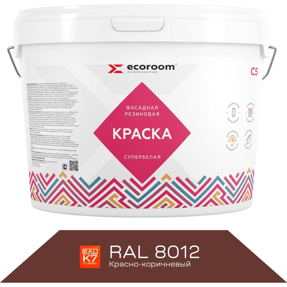 Фасадная резиновая краска ECOROOM RAL 8012 красно-коричневый, 1.3 кг Е-Кр -3583/8012 - это высокоэластичный состав с высокими показателями устойчивости к эксплуатационной нагрузке. Идеально подходит для окрашивания бетона, газобетона, гипсокартона, дерева, ДСП, ДВП, кирпичных, зашпаклеванных, оштукатуренных поверхностей.Благодаря составу, краска образует дышащее, светопрочное покрытие, не препятствующее воздухообмену. Может использоваться как гидроизоляция, для декоративной отделки кирпичных и каменных стен. Эффективно используется при и ремонте зданий, поверхности которых склонны к образованию микротрещин, для первичной и ремонтной окраски крыш, цоколей и подвалов.