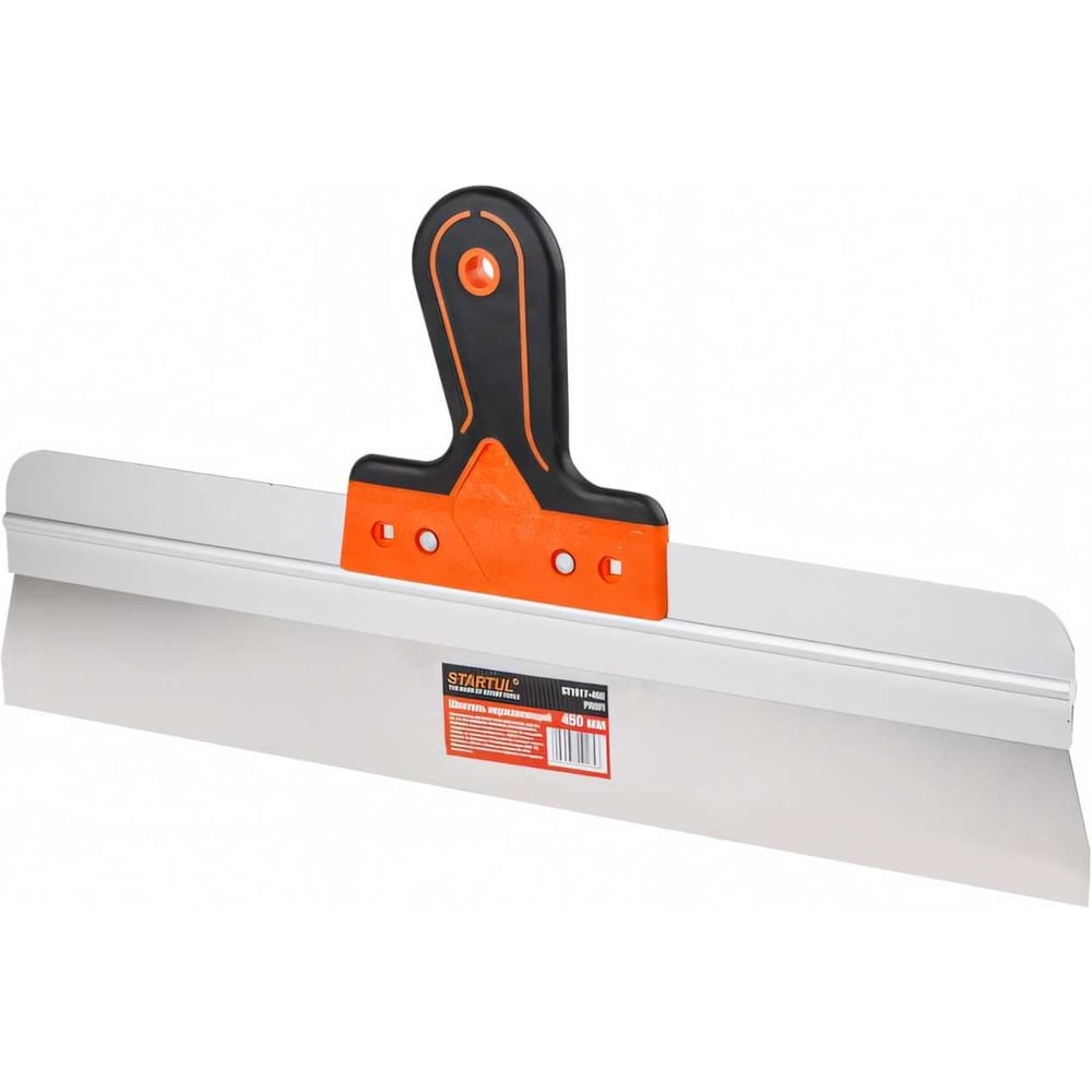Фасадный шпатель STARTUL Profi нержавеющий, 450 мм ST1017-450 используется для нанесения, разравнивания и сглаживания шпаклевочного слоя на поверхности. Ровное жесткое полотно позволяет получать идеальный результат при нанесении шпатлевки или штукатурки на стены. Полотно шпателя выполнено из качественной нержавеющей стали, благодаря чему не боится даже агрессивных сред. Эргономичная двухкомпонентная рукоятка обеспечивает комфортную эксплуатацию.