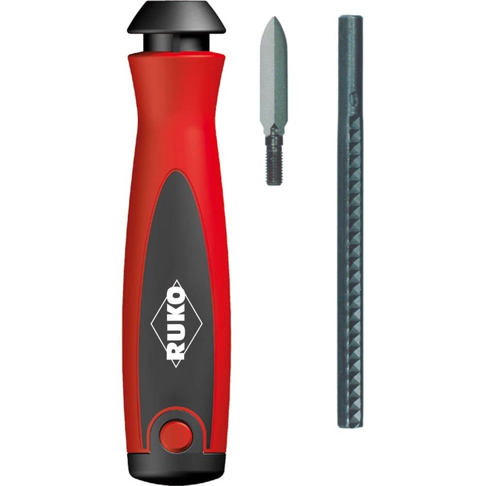 Набор фаскоснимателей Ruko Unigrat C 107004 представляет собой специализированный инструмент для удаления заусенцев с отверстий и кромок. Благодаря различным лезвиям есть возможность обработки отверстий с разных сторон. Лезвие само подстраивается к контуру. Можно удалять заусенцы из отверстий снаружи, внутри или с обеих сторон.