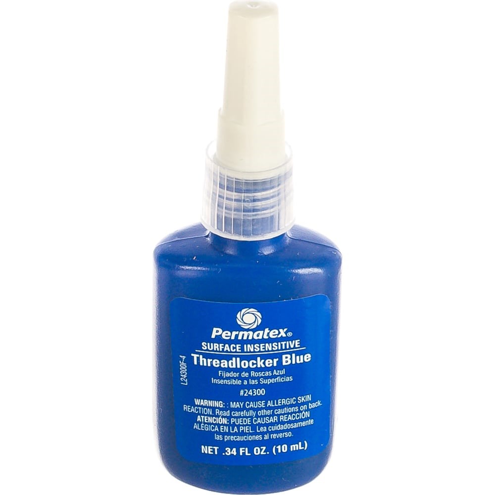 24300 Анаэробный фиксатор для замасленных соединений от 6 до 20 мм. Синий - средняя фиксация. 10 мл. Улучшенная замена стопорным шайбам. Склеивает металлические поверхности, когда после сборки к ним прекращается доступ кислорода. Одновременно стопорит, герметизирует и защищает резьбу от коррозии. Обладает повышенной адгезией к замасленным поверхностям. Специально разрабатывался для использования при ремонтных работах. Применение: Нанести на первые 2-3 витка резьбы и собрать детали. Для ускорения процесса при низких температурах, а также для неактивных поверхностей используйте аэрозольный праймер-активатор Permatex 24163. Состав: полигликоль диметакрилат >30%, тетраэтиленгликоль <30%, поливинилацетат <5%, полиэтилен гомополимер <5%,кумил гидропероксид <5%, сахарин <5%. Хранить в сухом и прохладном месте. Беречь от детей.