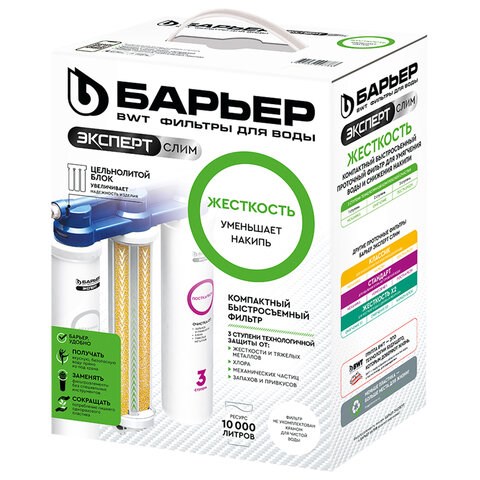 Фильтр для воды БАРЬЕР "ЭКСПЕРТ СЛИМ Жесткость", 3 ступени, ресурс 10000 л, Н821Р06