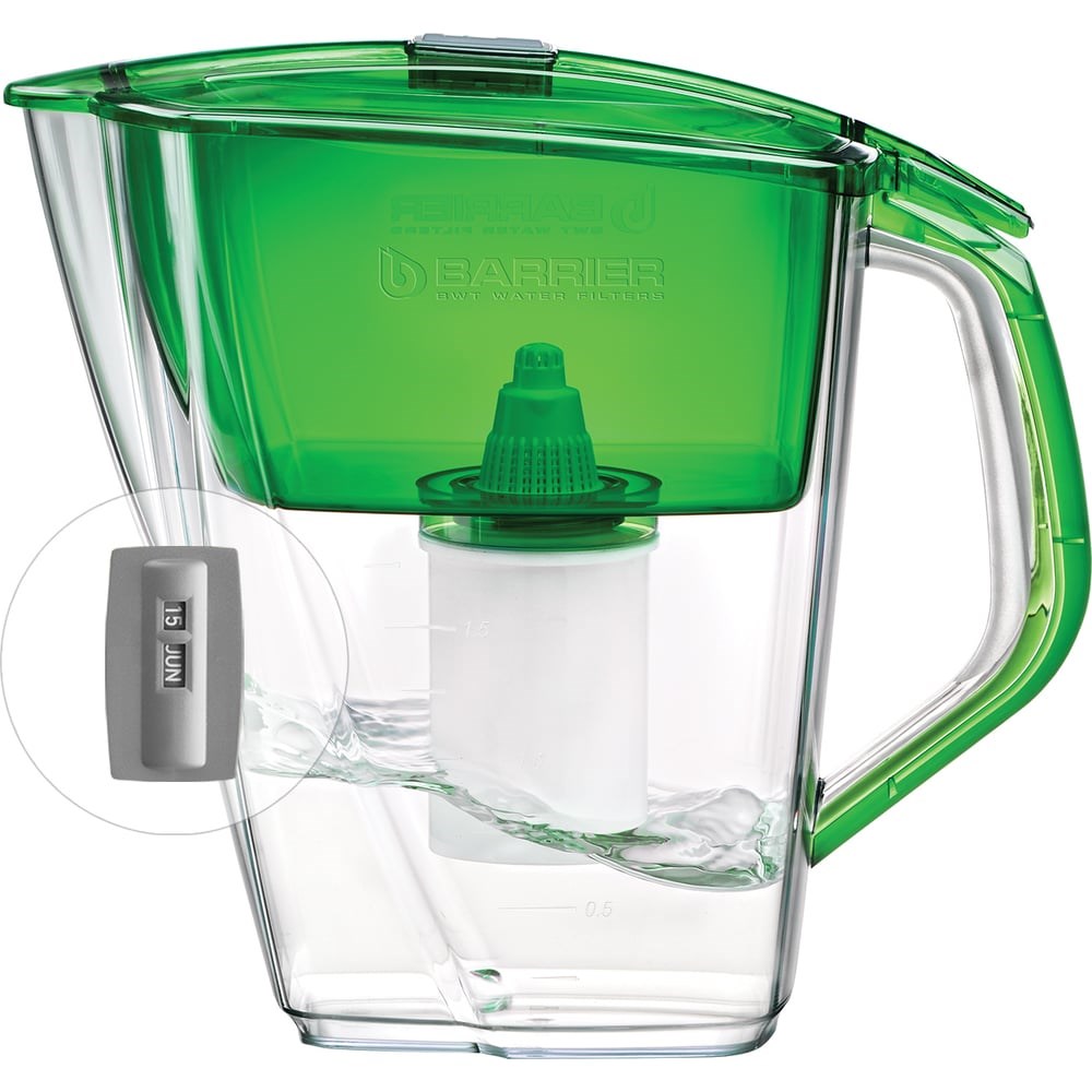 Фильтр-кувшин для очистки воды БАРЬЕР Гранд Нео 4,2 л, цвет нефрит В012Р00 классической формы с механическим индикатором ресурса. Воронка удобно открывается при наклоне кувшина. Индикатор на крышке подскажет, когда заменить кассету. Общий объем кувшина 4,2 литра, полезный объем 2,2 литра. Кувшин можно мыть в посудомоечной машине. По окончанию ресурса кассету можно сдать на переработку.