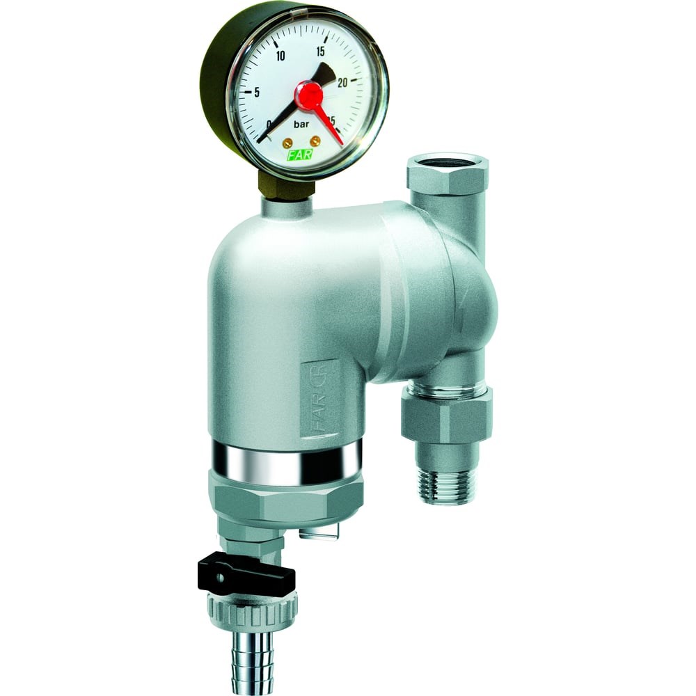 Фильтр FAR 100 мкм, с магнитными вставками, с манометром, Max: 95 C, 25 бар, поворотное соединение, 3/4" ВР-НР FA 39M6 34100 предназначен для установки в систему холодного или горячего водоснабжения квартиры или загородного дома. Защищает приборы (стиральная машина, краны, подводки и т.д.) от окалин, песчинок и прочих механических примесей. Материал корпуса DZR-латунь (хромированное покрытие). Внимание! Фото может отличаться от товара, смотреть характеристики.