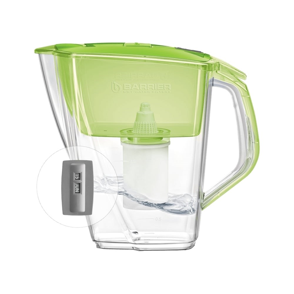 Фильтр-кувшин для очистки воды БАРЬЕР Прайм 4,2 л, цвет зеленое яблоко В552Р00 отлично впишется на любую кухню. Удобный клапан на крышке позволяет наполнить кувшин одной рукой. Механический индикатор подскажет, когда придет время менять кассету. Резьбовое крепление кассеты исключает попадание неотфильтрованной воды в очищенную. Кувшин с механическим индикатором можно мыть в посудомоечной машине. Одна кассета БАРЬЕР способна заменить несколько сотен пластиковых бутылок. По окончанию ресурса кассету можно сдать на переработку. Объем очищенной воды - 2 л.
