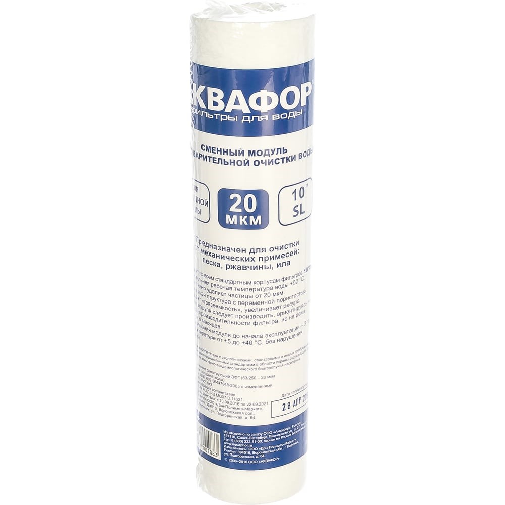 Элемент фильтрующий ЭФГ Аквафор предназначен для очистки холодной воды от песка, механических примесей, ржавчины, ила (20 мкм). Модуль предварительной очистки тщательно устраняет все бактерии и химикаты. Устанавливается в корпус предфильтров Трио Норма. Выполнен из 100% пористого полипропилена.