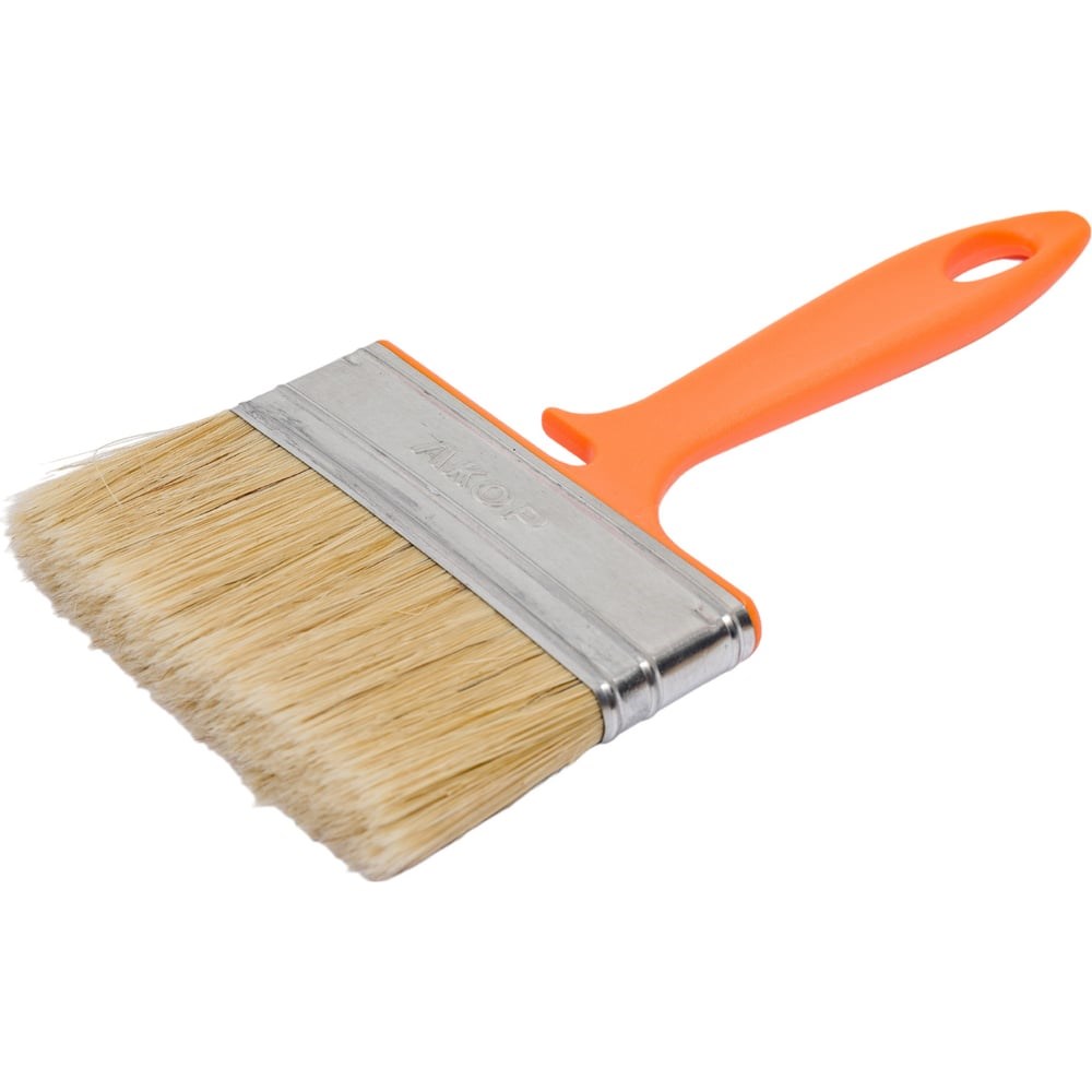 Флейцевая кисть АКОР Фасад 100 мм, толщина 12 мм натуральная щетина 4607044332898 обладает высокой надежностью за счет прочной рукоятки и надежно смонтированной щетины. Бандаж обеспечивает ее плотный прижим к рукоятке.Инструмент не скользит в руках - профиль рукояти создает надежный хват. Толщина щетины оптимальна для хорошей впитываемости. Этот фактор ускоряет окрашивание и делает его более качественным.