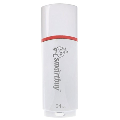Флеш-диск 64 GB, SMARTBUY Crown, USB 2.0, белый, SB64GBCRW-W