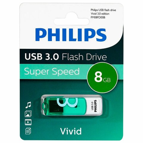 Флеш-диск 8 GB PHILIPS VIVID, разъем USB 3.0, зеленый, FM08FD00B/97