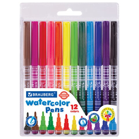 Фломастеры BRAUBERG "PREMIUM", 12 цветов, КОРПУС С ПЕЧАТЬЮ, вентилируемый колпачок, ПВХ-упаковка с европодвесом, 151942