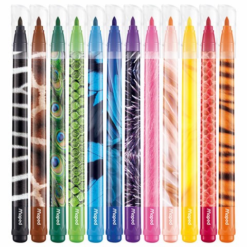 Фломастеры MAPED (Франция) "Animals" 12 цветов, смываемые, вентилируемый колпачок, 845403