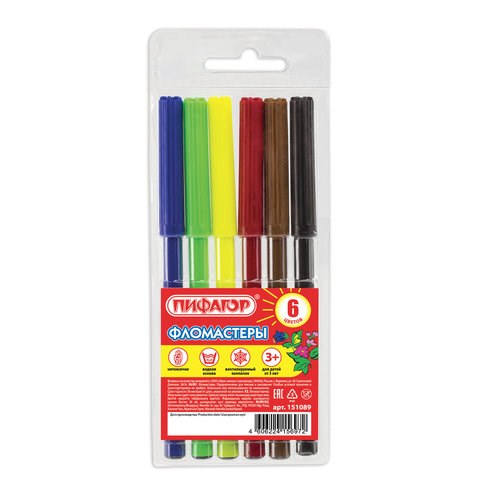 Фломастеры ПИФАГОР, 6 цветов, вентилируемый колпачок, 151089
