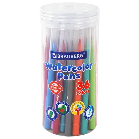Фломастеры в тубе классические 36 цветов, вентилируемый колпачок, BRAUBERG "PREMIUM", 152200