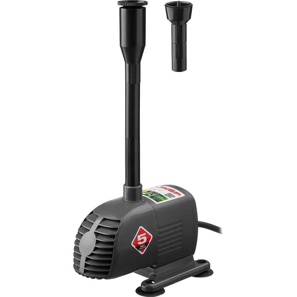 Фонтанный насос Зубр ЗНФЧ-20-1.6 предназначен для декорирования садового пруда. Максимальная глубина установки насоса составляет 3 метра. В комплект поставки входят две насадки: каскад 70 см, колокольчик 50 см. В конструкции установлен губчатый фильтр, который предотвращает попадание твердых частиц внутрь механизма. Благодаря двум присоскам, насос надежно крепится к плиточному или пластиковому дну водоема. Модель не подходит для организации водопада.