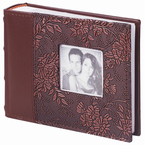 Состоит из 50 бумажных листов (11х16 см) с карманами и вмещает 100 фотографий размером 10х15 см, по 1 штуке на странице. Обложка фотоальбома скомбинирована из материалов под глянцевую и фактурную кожу коричневых тонов, соединенных по вертикали двойным швом. Рельефный корешок и рамка для фото в обложке подчеркнут индивидуальность его обладателя. Фотоальбом с книжным переплетом отличается повышенной прочностью и долгим сроком службы. Имеются поля для подписей. Размер - 18,7х16,3 см. Размер окошка под фото на обложке - 7х7 см.
