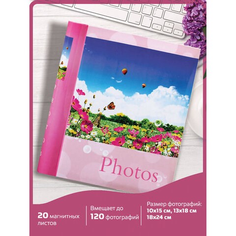 Фотоальбом BRAUBERG на 20 магнитных листов, 23х28 см, "Дивный луг", розовый, 390686