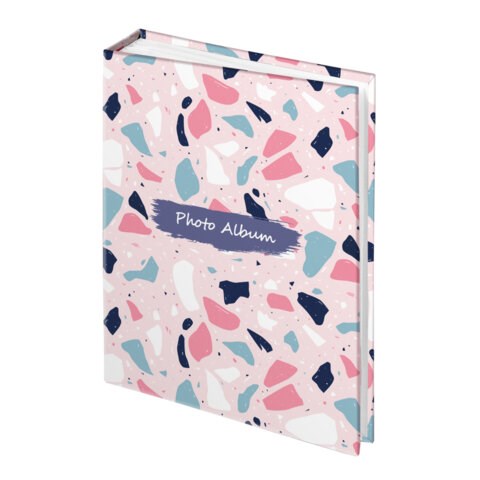 Состоит из 100 полипропиленовых листов размером 15,5х21 см с карманами и вмещает 200 фотографий размером 10х15 см по 2 штуки на странице. Обложка фотоальбома выполнена в модном принте "терраццо", а его листы склеены в единый блок. Размер – 18,5х 23,5 см. Упакован в термоусадку и дополнительно в воздушно-пузырчатый пакет, который защитит фотоальбом от любых повреждений во время транспортировки.