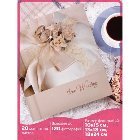 Фотоальбом BRAUBERG свадебный "Наша свадьба" 20 магнитных листов, 23х28 см, спираль, 391154