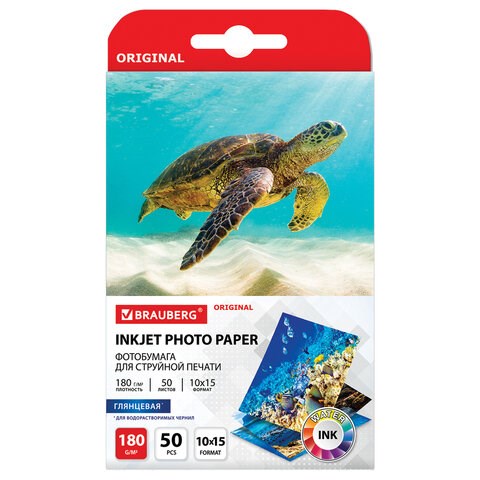 Фотобумага глянцевая, 10х15 см, 180 г/м2, односторонняя, 50 листов, BRAUBERG ORIGINAL, 364009