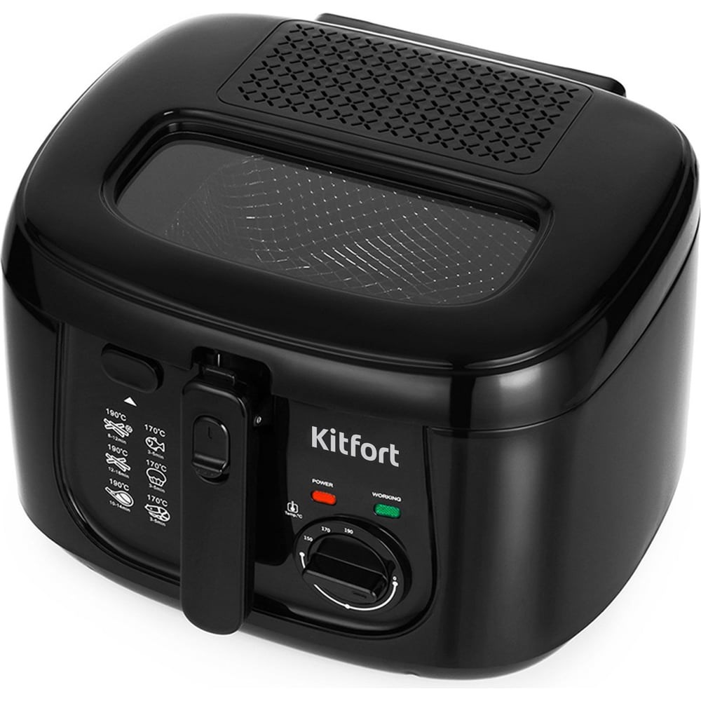 Фритюрница KITFORT КТ-2018 с плотной крышкой, ккоторая оборудована специальным смотровым окошком, через которое можно наблюдать за процессом приготовления. Вдобавок крышка оборудована фильтром, который предотвращает распространение неприятных запахов. Фритюрница оснащена поворотным регулятором трёх режимов нагрева, необходимых для разных блюд и разного объёма продуктов. Панель подсказок, где можно увидеть, сколько времени потребуется до полной готовности еды, размещена слева от регулятора.