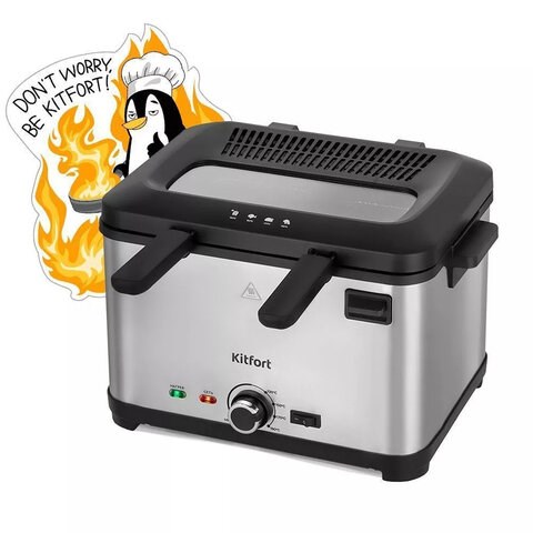 Фритюрница KITFORT KT-6240, 2000 Вт, объем 4,8 л, регулировка 130-190 °С, 3 корзинки, черная/серебристая, КТ-6240