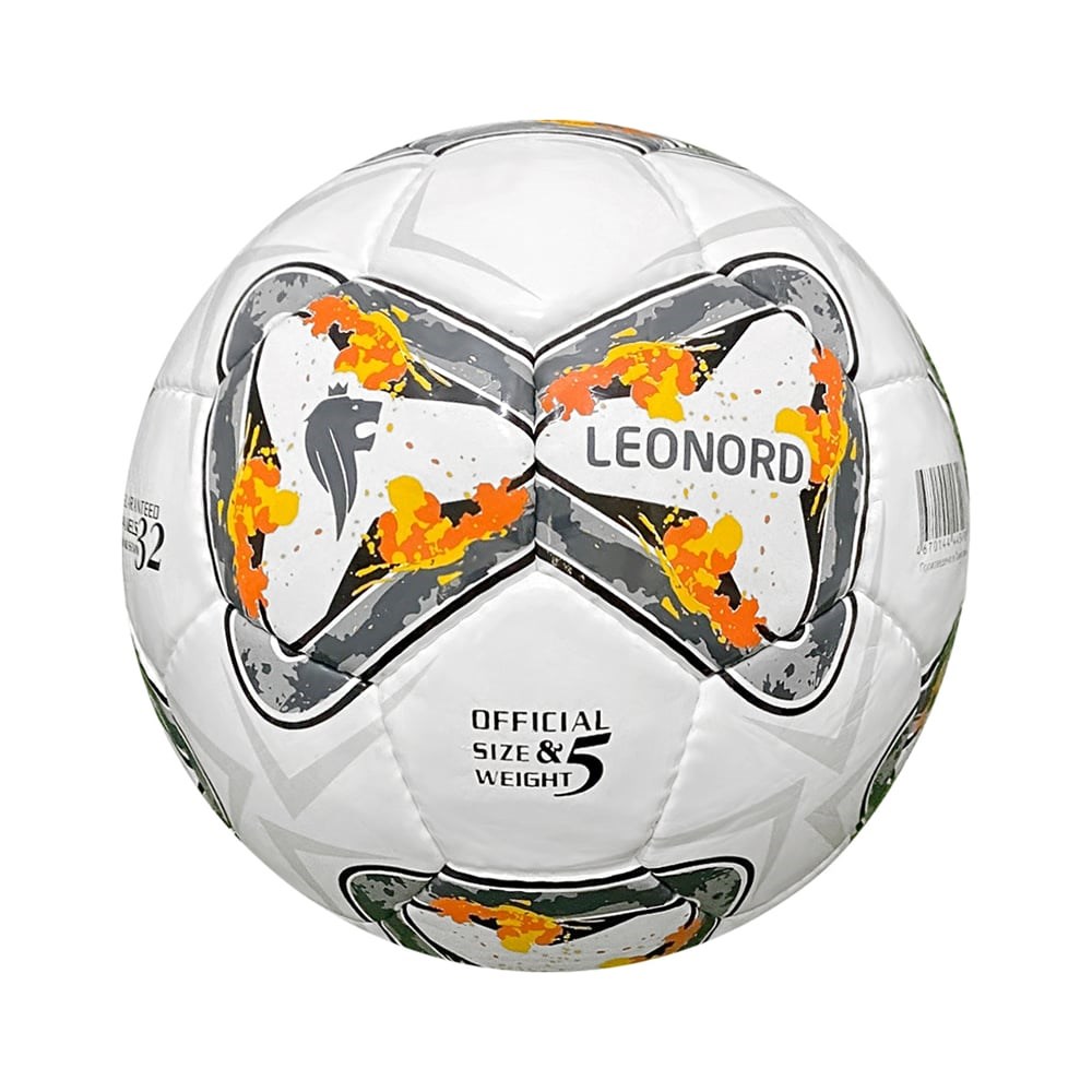 Мяч футбольный LEONORD №5Сшитый вручную мячРазмер №54 слоя32 панелиВнешний материал: полиуретан высокой плотности 1.2 ммБутиловая камера для более длительного удержания воздуха