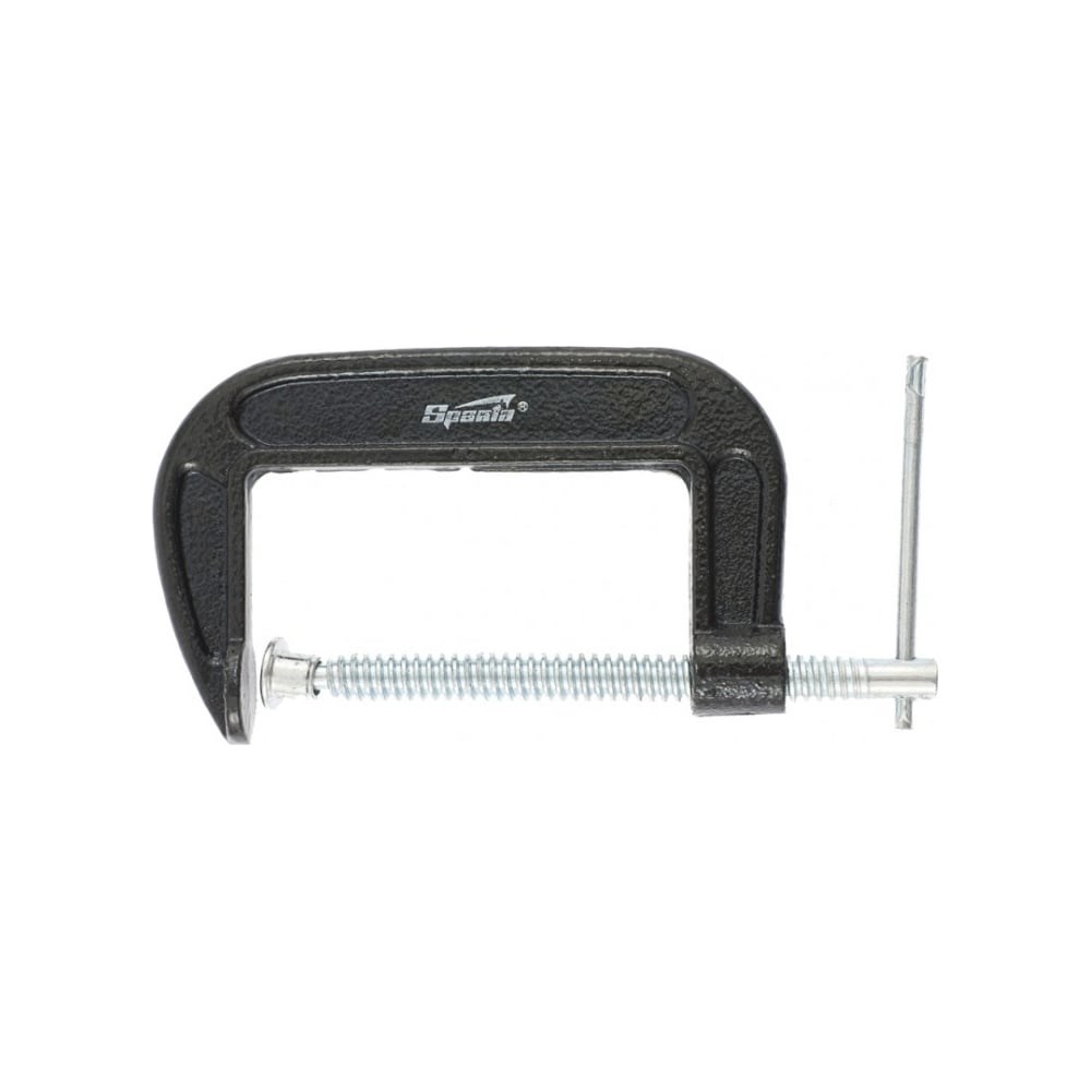 G-образная струбцина Sparta 206535 с шириной зажима 75 мм надежно фиксирует различные детали для склеивания, сверления, пиления, шлифования или сварки. Винт с воротком и крупной червячной резьбой позволяет зажимать детали плавно и со значительным усилием. Струбцина будет полезна домашним мастерам.
