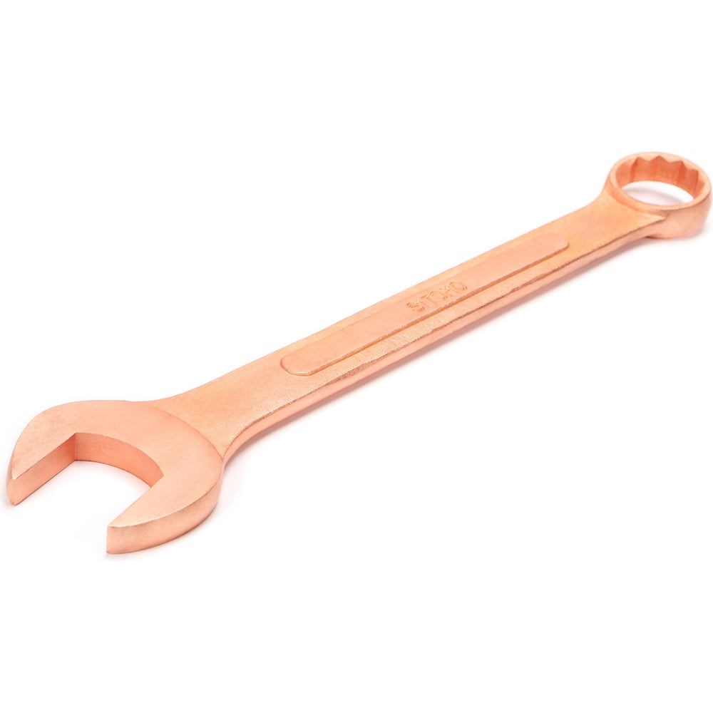 Комбинированный гаечный ключ предназначен для работ с резьбовыми соединениями в процессе ремонтных и монтажных работ. Инструмент выполнен из высококачественной стали, благодаря чему отличается прочностью и долговечностью. Омедненное покрытие обладает повышенной устойчивостью к высокотемпературному воздействию случайной искры. Ключ может применяться на предприятиях с наличием потенциально опасных сред, а также в быту.