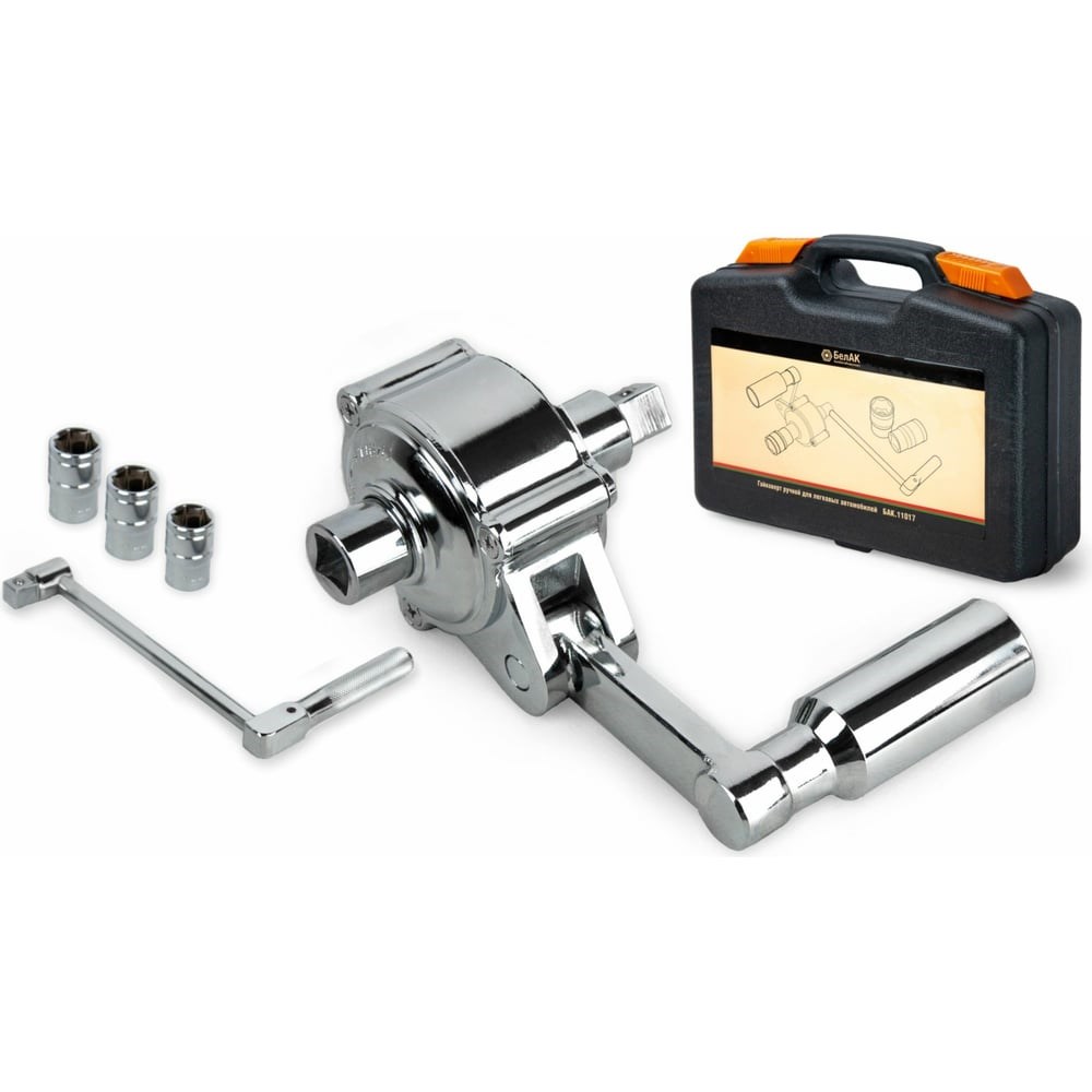 Гайковерт для легковых автомобилей с головками БелАК 17х19х21 БАК.11017 изготовлен из стали повышенной прочности. Инструмент обладает хромированной поверхностью, и относится к премиальной линейке. В комплекте представлены 3 распространенные головки для гайковерта 17 мм, 19 мм, 21 мм с присоединительным квадратом в ½". Передаточное число гайковерта 1:16. Это означает, что приложенное усилие возрастет в 16 раз.