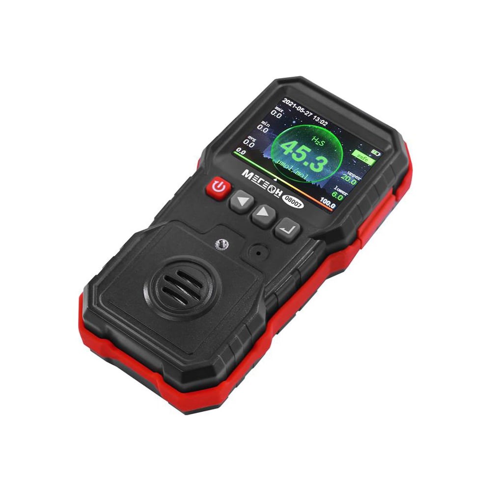 Газоанализатор для измерения концентрации сероводорода МЕГЕОН 08007 к0000034416 имеет современный эргономичный корпус с силиконовой вставкой противоскольжения. Для нагрудного ношения прибора на задней стенке предусмотрена стальная прищепка с кольцом, которая обеспечивает надежное удержание, а также позволит закрепить анализатор на поясе. Все процессы отображаются на ярком цветном ЖК-дисплее. Данные могут быть записаны в память, которая позволяет сохранить до 120000 измерений. При этом обеспечивается удержание максимальных, минимальных и средних значений в автоматическом режиме. Три вида настраиваемой сигнализации включают в себя звуковое сопровождение, световую индикацию и вибрацию, которые осуществляют информирование при достижении концентрации одного из пределов тревоги. Одним из значимых преимуществ является возможность калибровки тремя методами по двум точкам. Питание осуществляется встроенным перезаряжаемым литиевым аккумулятором емкость 1800 мА/ч.