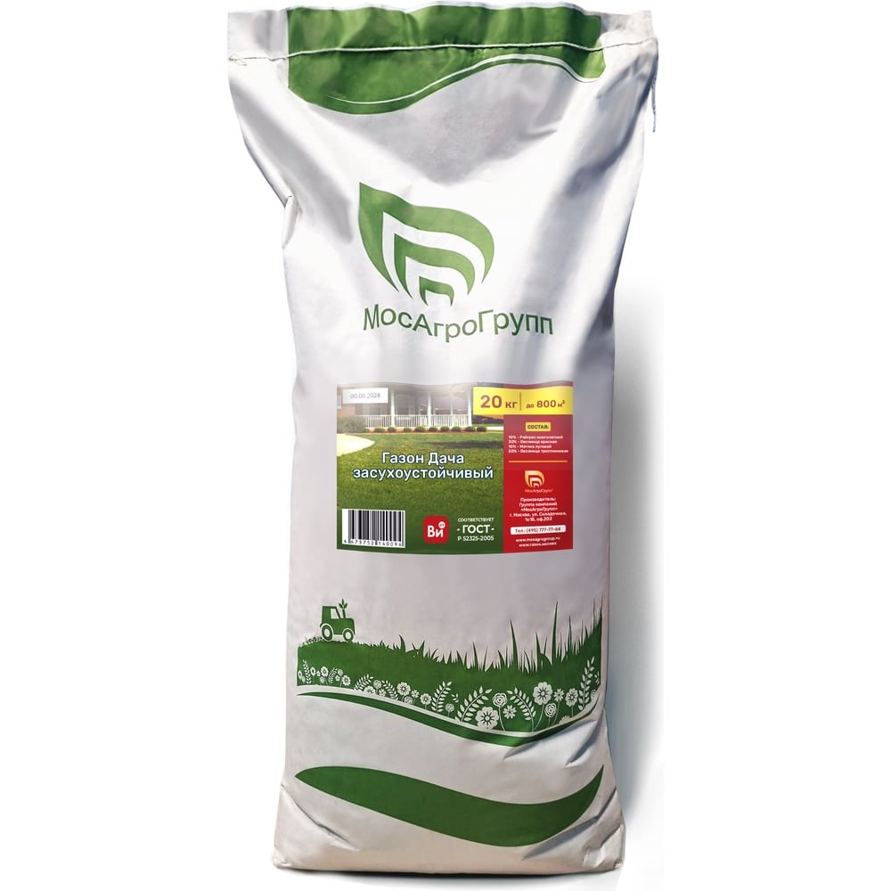 Семена МосАгроГрупп газон Дача для засушливых регионов 20кг ВИ200008 – декоративная смесь из тонколистных видов трав. Предназначена для озеленения садовых и приусадебных участков, городских зон.Обладает высокой устойчивостью к засухе и адаптацией к различным климатическим условиям. Отличается своим исключительно глянцевым оттенком и свежим цветом на протяжении всего лета.