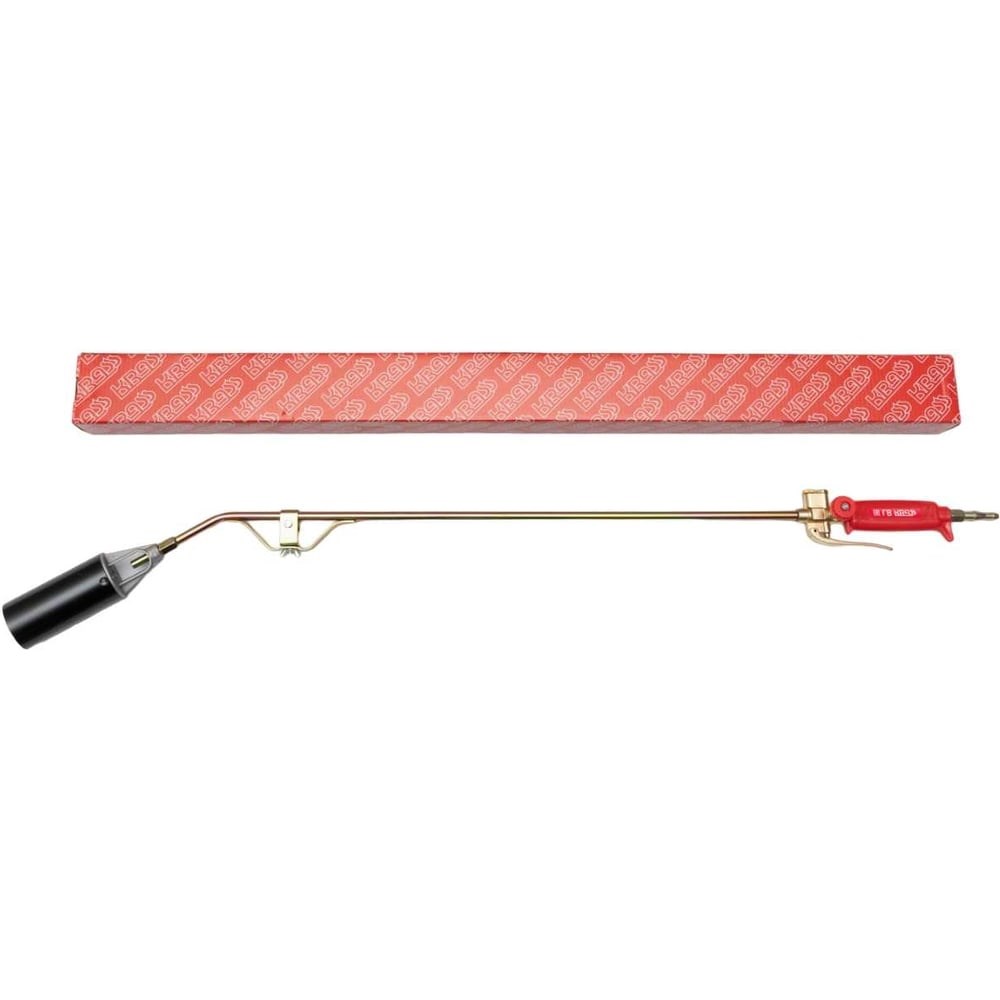 Газовоздушная кровельная горелка рычажная KRASS ГВ-111-Р 2117536 предназначена для нагрева изделий и заготовок из черных и цветных металлов и их пайки, оплавления битумных рулонных материалов, сушки литейных форм, обжига старой краски, ремонта кабельных линий и др. работ. Изогнутая форма наконечника позволяет применять горелку для работы в труднодоступных местах. Рычажная конструкция облегчает включение и выключение полной мощности нагревающего пламени. Дополнительные характеристики: Давление пропана: 0,2-0,4 МПа Расход: 2,13-4,26 м куб./ч