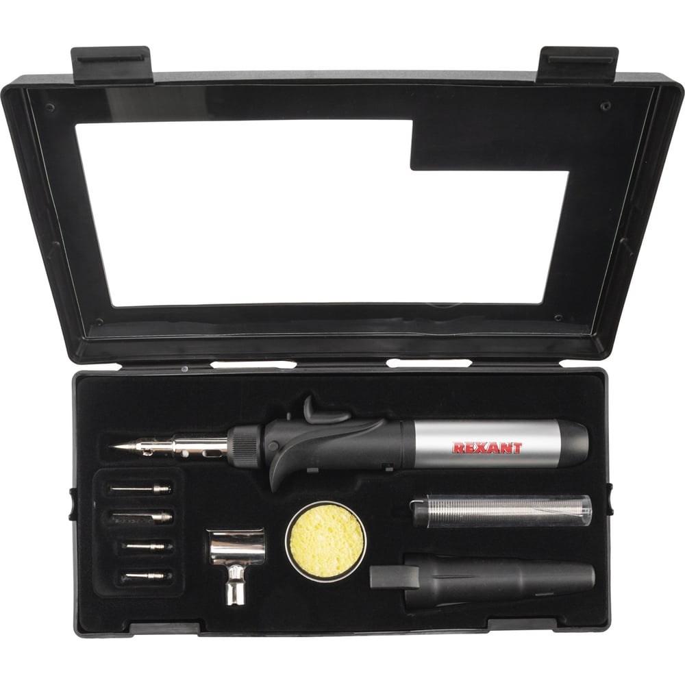 Паяльник газовый с резервуаром 17мл REXANT предназначен для экстренного ремонта электроники, плавки и сварки пластиковых частей, нагрева малых металлических элементов, плавки металла с низкой температурой плавления, ремонта ювелирных изделий, сгибания тонких стеклянных трубок, прогрева механизмов в холодное время года и т.д. Устройство состоит из резервуара с газом и горелки, на которую может устанавливаться паяльное жало и другие насадки. Газовая пайка может осуществляться как посредством нагретого воздуха, когда используется только горелка, так и при использовании разных насадок. Данный прибор оснащен функцией регулировки пламени, защитой от несанкционированного включения, а также фиксацией включенного положения. Разогрев паяльника осуществляется менее чем за 30 секунд. Прибор имеет компактные размеры и является полностью автономным. В набор входит: горелка с пьезоподжигом, 5 насадок для пайки, насадка для термоусадки, губка для очистки жала в круглой нише, защитный колпачок для жала, колба с припоем (60% олово, 40% свинец), переходник для сменных жал.