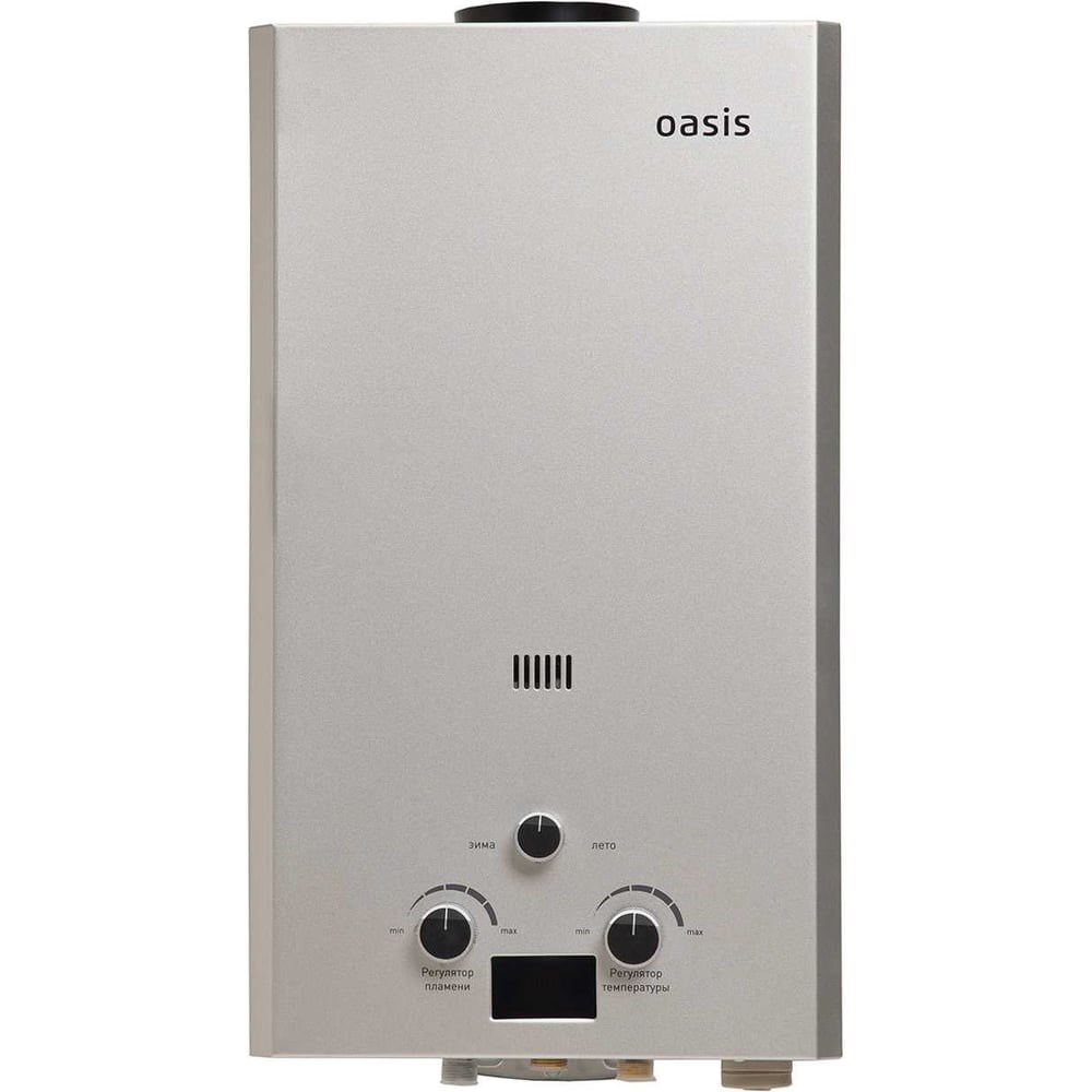 Газовый проточный водонагреватель «Oasis» OR - 20S предназначен для обеспечения горячего водоснабжения там, где его нет. Аппарат подходит для квартир и частных домов снабжённых дымоходом. Водонагреватель имеет мощность 20 кВт, что позволяет получить поток воды до 10 л/мин. Простое управление. Механическое управление простое и интуитивно понятное. Автоматический электронный поджиг самостоятельно подпаливает газ, нужно просто повернуть кран с горячей водой. Цифровой индикатор показывает температуру воды, вытекающей из крана, что позволяет более тонко настроить степень нагрева. Всё продумано. Поджиг работает от батареек, что помогает избежать неудобств при отключении электричества. Отсутствие постоянно горящего запальника экономит до 70м^3 газа в год. Ионизационный электрод контроля пламени автоматически отключает подачу газа, если горелка гаснет. Функция «зима/лето» позволяет снизить количество потребляемого газа за счёт того, что летом вода в водопроводе теплее. Теплообменник имеет специальное покрытие, которое обеспечивает дополнительную защиту от окисления. Газовые проточные водонагреватели «Oasis» - комфорт и надёжность в одном устройстве.