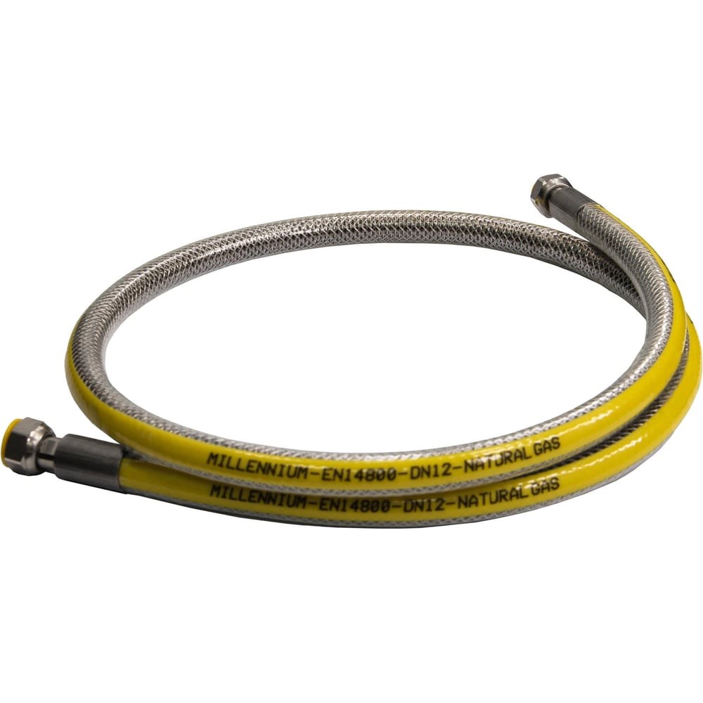 Газовый шланг Millennium PGEF12300 — надёжная и безопасная гибкая подводка для подключения газовых плит, котлов, колонок и другого оборудования. Длина шланга — 3 метра, соединение гайка/гайка 1/2", конструкция выполнена из сильфонной нержавеющей трубы в защитной металлической оплётке. Сильфонная структура обеспечивает устойчивость к перепадам давления и температур, предотвращает перегибы и повреждения. Оплётка защищает от механических воздействий и искр. Уплотнительные кольца из термостойкой резины обеспечивают герметичное соединение без дополнительных прокладок. Шланг сертифицирован для использования с природным и сжиженным газом, выдерживает давление до 6 бар и температуру до +200 °C. Свойства: Тип: шланг газовый сильфонный Длина: 3 м Диаметр резьбы: 1/2" Соединение: гайка/гайка Материал: нержавеющая сталь, металлическая оплётка Рабочее давление: до 6 бар Температура: до +200 °C Назначение: газовые приборы (плиты, котлы) Артикул: PGEF12300 Область применения: Подключение газовых плит, котлов, колонок, обогревателей Бытовые и промышленные установки Системы природного и сжиженного газа