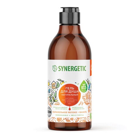 Гель для душа 380 мл, SYNERGETIC "Карамельное яблоко и ваниль", натуральный, биоразлагаемый, 400005
