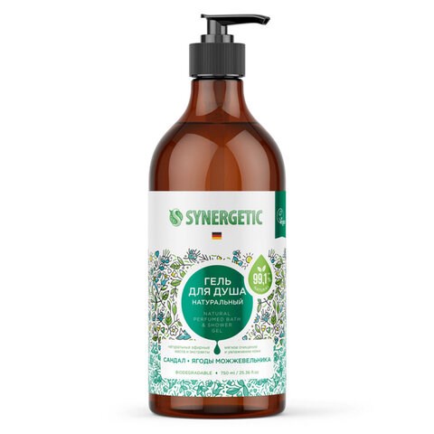 Гель для душа 750 мл SYNERGETIC "Сандал и ягода можжевельника", натуральный биоразлагаемый, 400011