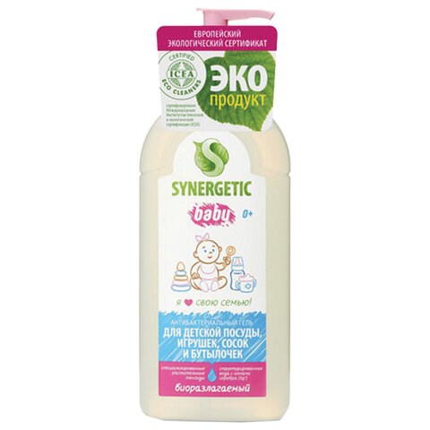 Гель для мытья детской посуды 500 мл, SYNERGETIC, биоразлагаемый, дозатор, 103054