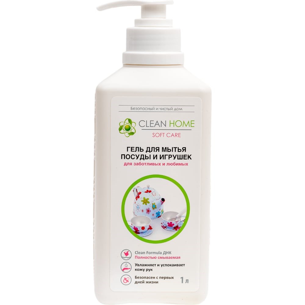 Гель для мытья детской посуды и игрушек с дозатором CLEAN HOME 1 л 410 предназначен для мытья детской посуды, бутылочек из стекла и пластика, сосок из латекса и силикона, всех видов игрушек (кроме мягких), гигиенических принадлежностей, а также мытья любых поверхностей с которыми соприкасается ребенок с первых дней жизни. Сбалансированный состав геля содержит самые современные и безопасные моющие вещества, а гипоаллергенный аромат не вызывает аллергии. Полная смываемость исключает негативное влияние средства на организм человека.