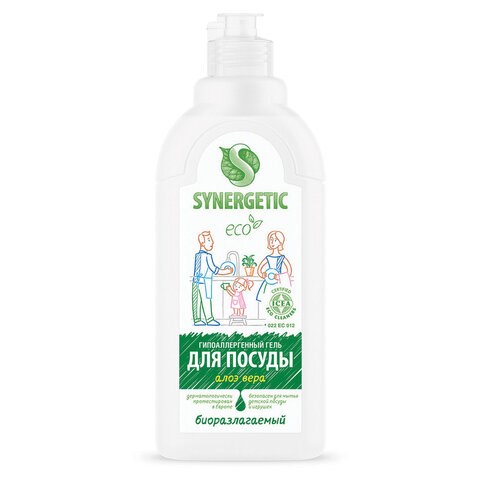 Гель для мытья посуды биоразлагаемый 500 мл, SYNERGETIC "Алоэ", флип-топ, 103053/14