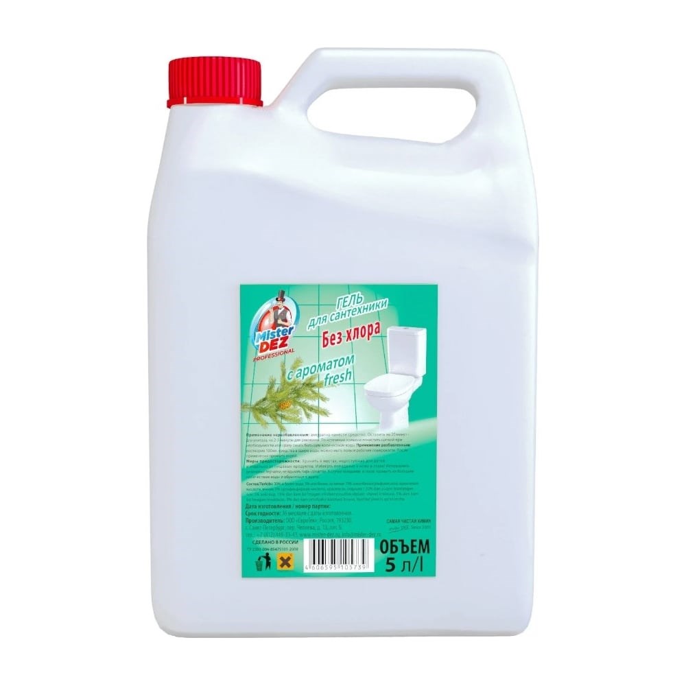 Гель для сантехники Mister Dez с ароматом fresh без хлора, 5 л 1187