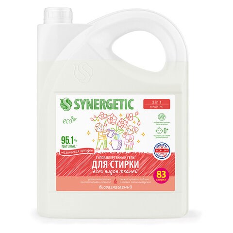 Гель для стирки концентрированный биоразлагаемый 5 л, SYNERGETIC "Магическая орхидея", 109839
