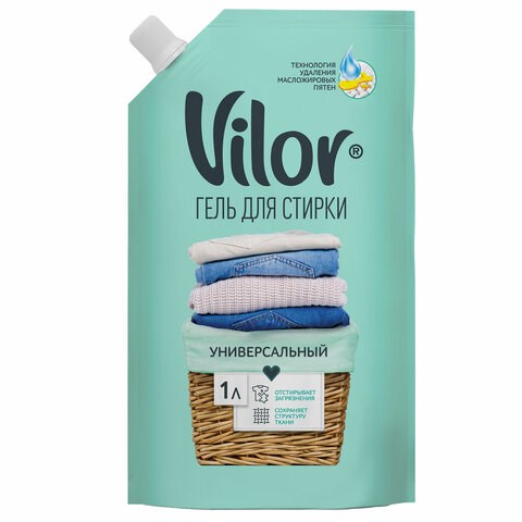 Гель для стирки универсальный 1000 г, VILOR для всех видов тканей, 15539