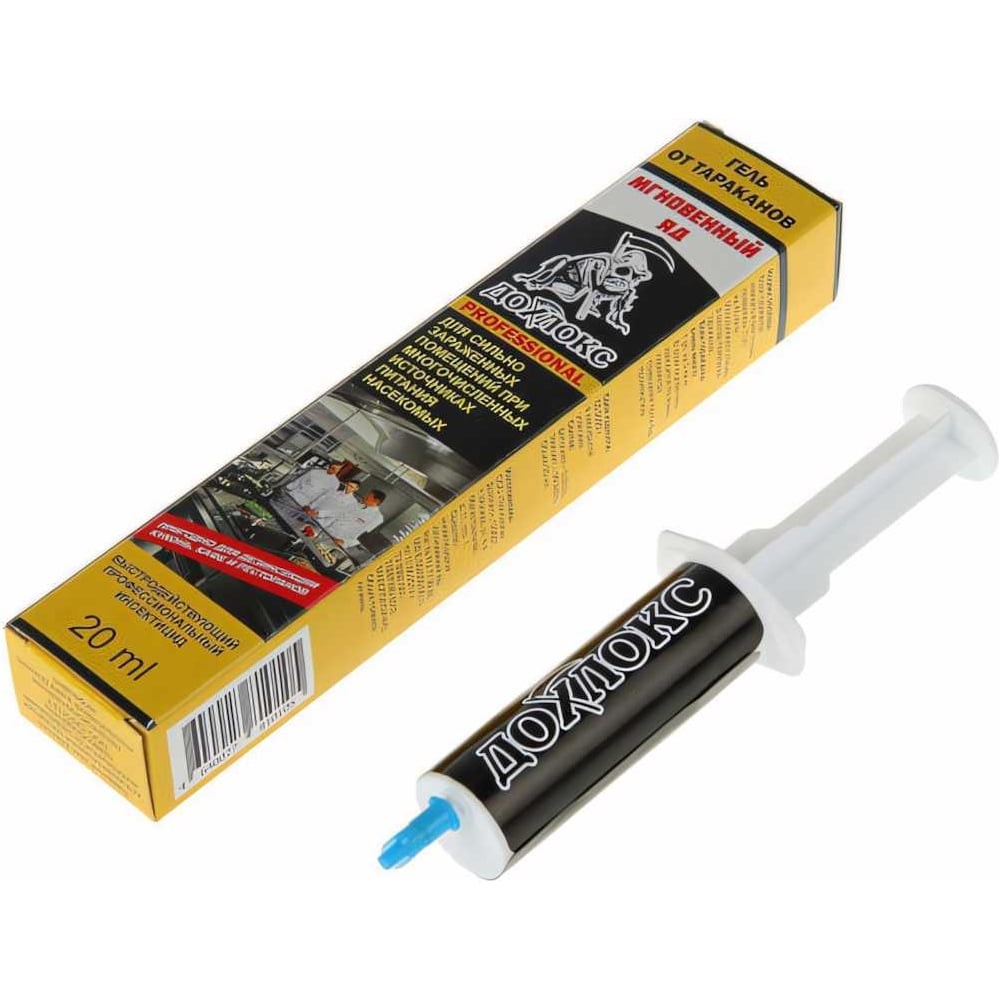 Гель Дохлокс Мгновенный яд 20 мл, шприц 16201 - самое мощное средство от тараканов с повышенным содержанием отравляющего вещества и уникальным аттрактантом (приманкой). Подходит для обработки даже сильно зараженных помещений с большим количеством источников альтернативного питания насекомых (кухни, кафе, рестораны).