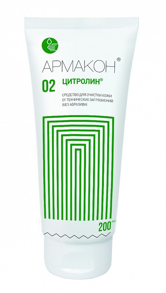 ГЕЛЬ:ЦИТРОЛИН® -средство для очистки кожи от технических загрязнений (без абразива) АРМАКОН ® -предназначено для очистки кожи от нефтепродуктов, масел, копоти, жира, угольной, графитовой, металлической пыли и т.п. -благодаря комбинации мягких и безопасных ПАВ эффективно очищает кожу, не травмируя ее -содержит увлажняющие и ухаживающие компоненты -специальная добавка связывает ионы тяжелых металлов, содержащиеся в водопроводной воде, тем самым препятствуя отложению металлов на коже. Эффективно в воде любой жесткости; возможно применение без добавления воды. Подходит для частого использования. Не содержит растворителей, щелочей, абразивов, красителей, силиконов, парабенов Упаковка: туба 200 мл, флакон с дозирующей насадкой 1 л, картридж 1 л, канистра 5 л.