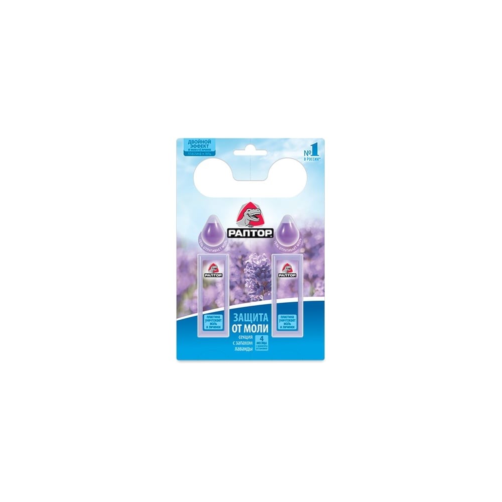 Гелевая секция от моли РАПТОР с запахом лаванды, 2 шт. 21795 G0002 не оставляет следов на одежде. В состав входит высокоэффективное японское вещество. Имеет удобную форму и приятный запах.