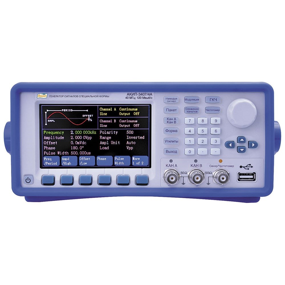 Генератор сигналов АКИП-3407/4А применяется для генерации достоверных сигналов стандартной формы. Это измерительный прибор, принцип действия которого основан на технологии прямого цифрового синтеза. Генератор широко используется для экспериментальных исследований и образовательных приложений, в лабораторном тестировании, электронном моделировании, имитации сигналов окружающей среды, отладке и ремонте РЭА. Прибор имеет графический жидкокристаллический дисплей, диагональ 11 см.